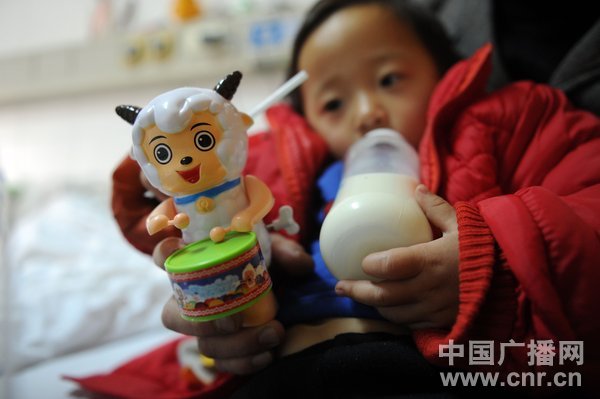 孩子扎着吊针的小手(图片来源:CNR/CFP)