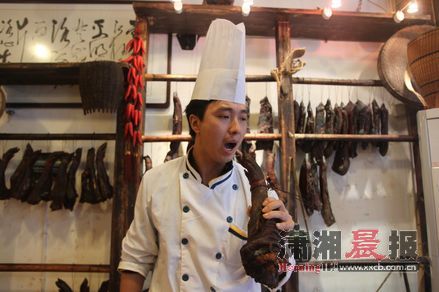 11月28日,长沙坡子街某餐馆,厨师曹运来展示他的绝技——模仿不同明星的唱技。图/记者华剑