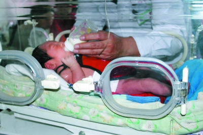 男婴在医院得到悉心照料