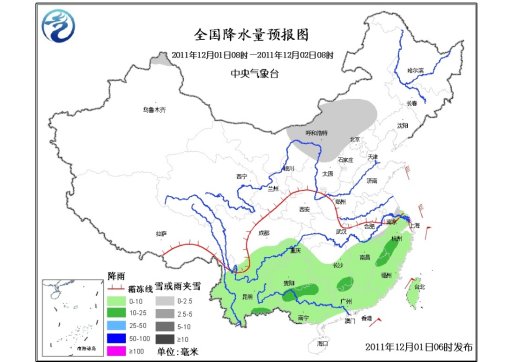 1日08时至2日08时,新疆北部山区、内蒙古中部、华北西北部有小雪或雨夹雪;江南大部、华南、西南地区东部和南部等地有小到中雨;江南东部及华南东部有4~6级风;东海大部、台湾海峡、南海东北部、南海中部和西南部海域将有7~8级、阵风9级的东北风。