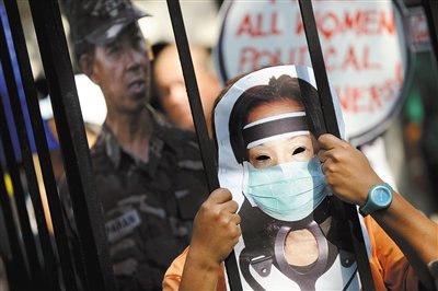 11月29日,菲律宾一名示威者要求囚禁阿罗约。