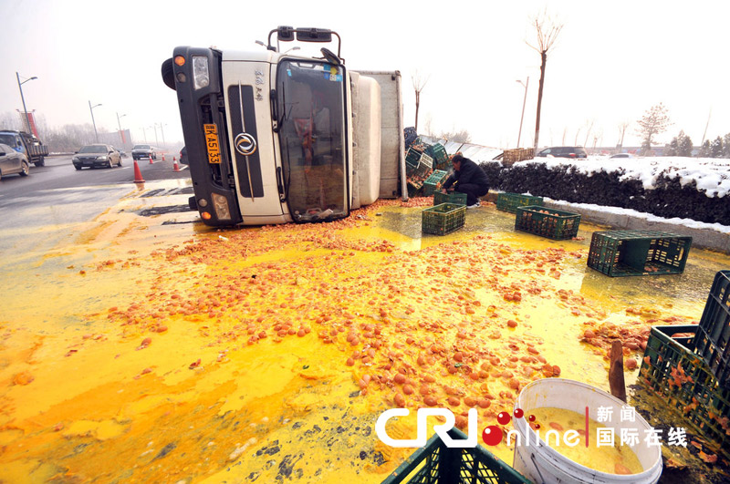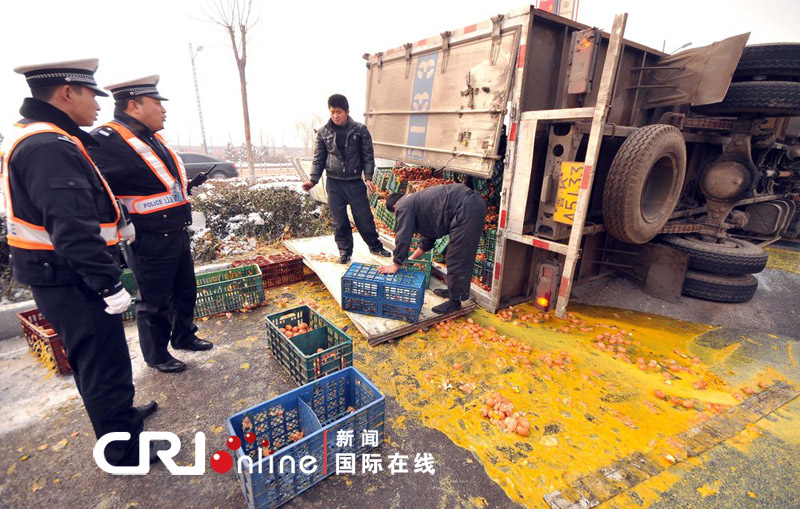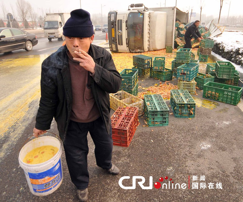 2011年12月3日上午九点多,山西太原龙城大街东口,一辆装载着两万多斤鸡蛋的大货车发生侧翻。
