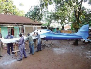 据英国、法国媒体5日报道,乌干达首都坎帕拉市郊28岁男子克里斯·诺萨姆巴虽然是一名天文学系大学毕业生,然而他并没有在任何天文机构中找到工作,于是他决定自办“宇航局”单干,并在母亲萨拉家的后花园中展开了他雄心勃勃的“非洲太空研究计划”:克里斯在600多名热心志愿者的帮助下,有的出钱、有的出力,目前正在试图打造非洲第一架“航天飞机”!一艘名为“非洲空中之鹰”的“航天飞机”雏形的外壳已经造好,惟一的问题是“引擎”还没影儿,克里斯解释称,目前他已经定购了一台喷气发动机,不过生产商还未交付,克里斯计划明年就让“非洲空中之鹰”进行首次试飞,而他接下来的目标是让这架“航天飞机”飞到24公里高的“太空边缘”!然而,克里斯匪夷所思的“航天计划”受到了许多人的怀疑,甚至有人将克里斯视为“疯子”。