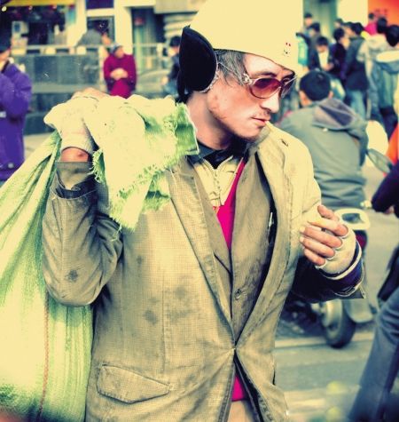 成都拾荒男子帅气时尚微博走红 酷似谢霆锋