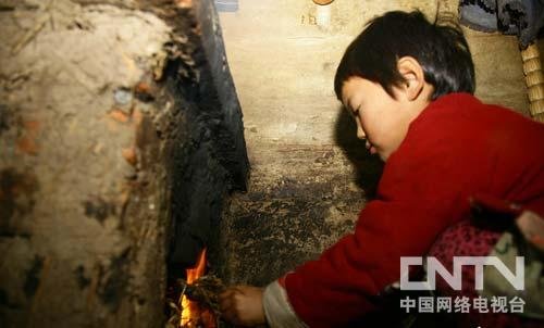 中午时分,小孙悦已经没有了刚见记者时的陌生感,开始端煤,点火,做面糊,屋里屋外的忙活起来,还不时地与邻居家的大黄狗嬉戏一下,只有这时,才能在那张粘着锅底灰的小脸上看到天真的笑容。(中国网络电视台)