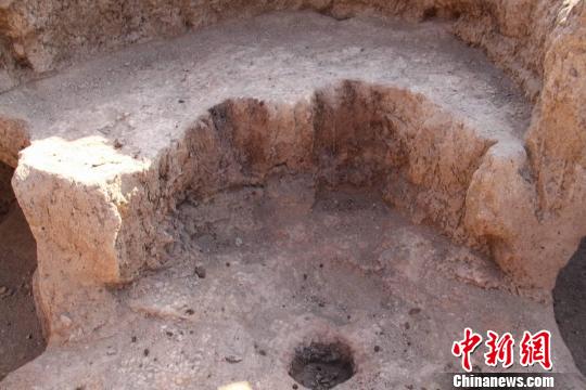 图为今年发掘出土的4000多年前的壁炉,炉前有火种洞。