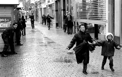 13日,列日警方封锁案发广场,市民奔向安全地带。