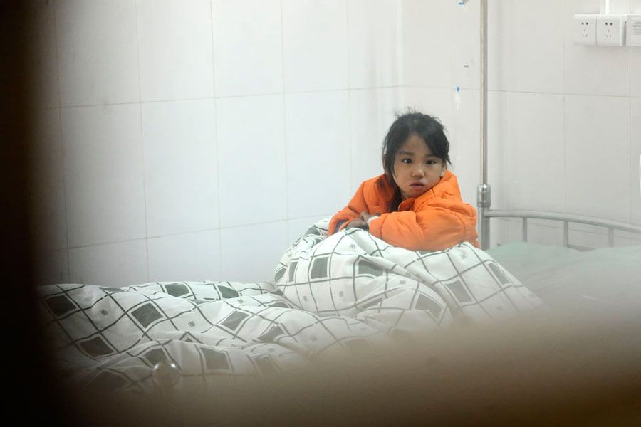 12月15日,12岁的刘南平躺在病床上。
