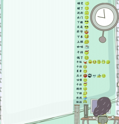 不少人欣赏过各种版本的公交表情图、教室表情图以及地铁表情图,各种表情引发人们极大共鸣。在大家对这些聊天表情制成的画面念念不忘时,上班族一天的表情新鲜出炉。