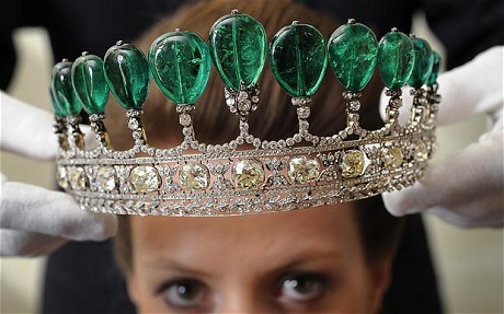 中新网5月18日电 据英国《每日电讯报》报道,德国王子吉多·亨克尔·冯·多纳斯马(Guido Henckel von Donnersmarck)为其第二任妻子凯塔琳娜定制的钻石、祖母绿宝石镶嵌的王冠,近日在瑞士以净价789万瑞士法郎(约合551万英镑)、总价1128万瑞士法郎(约合788万英镑)售出,是珠宝拍卖史上的第三高价。据悉,其原估值为300万英镑至600万英镑之间。