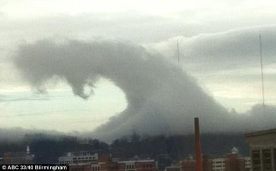 北京时间12月22日消息,12月16日下午,美国阿拉巴马州的伯明翰上空出现怪异的波状云,好似海浪一样在空中翻滚。随着极具超现实色彩的云浪出现,所有人的目光都投向天空,有人还用带有照相功能的手机拍下这罕见的景象。