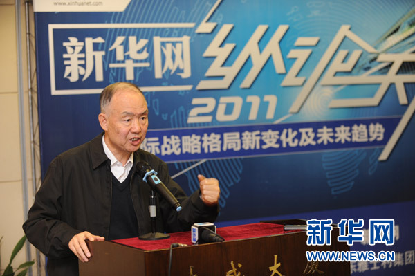 2011年12月16日,新华网“纵论天下”系列研讨会第二场《2011国际战略格局新变化和未来趋势》在京举行。图为中国人民解放军国防大学战略研究所原所长、海军少将杨毅在发表演讲。新华网 陈杰 摄
