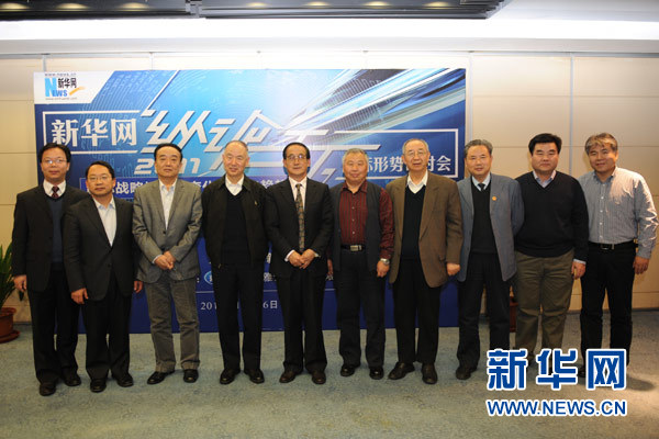 2011年12月16日,新华网“纵论天下”系列研讨会第二场《2011国际战略格局新变化和未来趋势》在京举行。图为部分到场嘉宾合影。 新华网 陈杰 摄