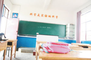 猫猫冲小学六年级的教室里,第一排座位最右边的是赵正娟的桌子,书包还在,人已远去,桌子下面还有一把赵正娟用过的尺子。