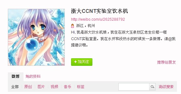 正是这位浙大CCNT实验室饮水机,12月22日第一次撰写微博到现在,短短不到1天时间内就已聚集粉丝8000多名,其爆发性的增长实在是非常惊人!这样创下“卖萌”记录,俨然不输给大牌明星。