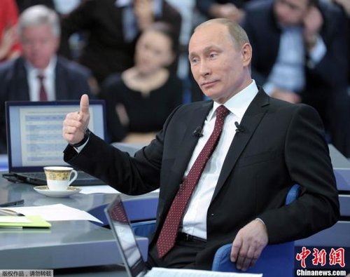 资料图:12月15日,俄罗斯总理弗拉基米尔·普京在电视、广播、网络直播节目中与普通民众直接交流,回答提问。俄罗斯国家杜马选举成为话题之一。