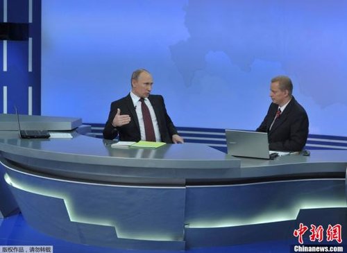 资料图:12月15日,普京通过媒体与民众交流,回答提问。
