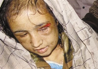 15岁的阿富汗少女萨哈尔-古尔,她在婆家被囚禁6个月,饱受折磨,身体多处受伤。
