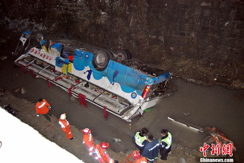 据了解,一辆车牌为皖J06318的大型客车行驶至兰海高速1765km+500处时,冲过中间隔离带及对向车道,冲出护栏,跌入高约8.8米的路坎下水沟。经核实,该车核载53人,实载56人,其中包括3名儿童。经初步调查,该车于1月3日23时许从浙江义乌出发,开往四川泸州叙永,驾驶员疲劳驾驶、超速行驶,加之降大雪,处置不当致事故发生。