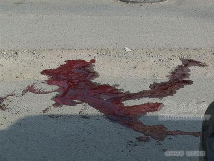 拿枪的歹徒的有两个,歹徒具体数目不清,现场被害者送到中大医院。他的黑色轿车在现场。被害者取钱被抢。车尾部有被撞的痕迹,现场有血迹,血迹已经被警方用纸盒遮盖,但是还是很清楚。