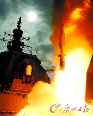 “金刚”级神盾舰发射“标准”-3导弹。