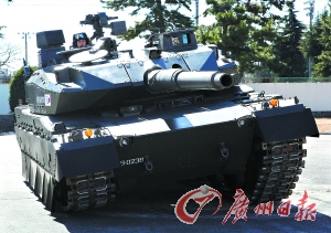 日本防卫省展示新式坦克。