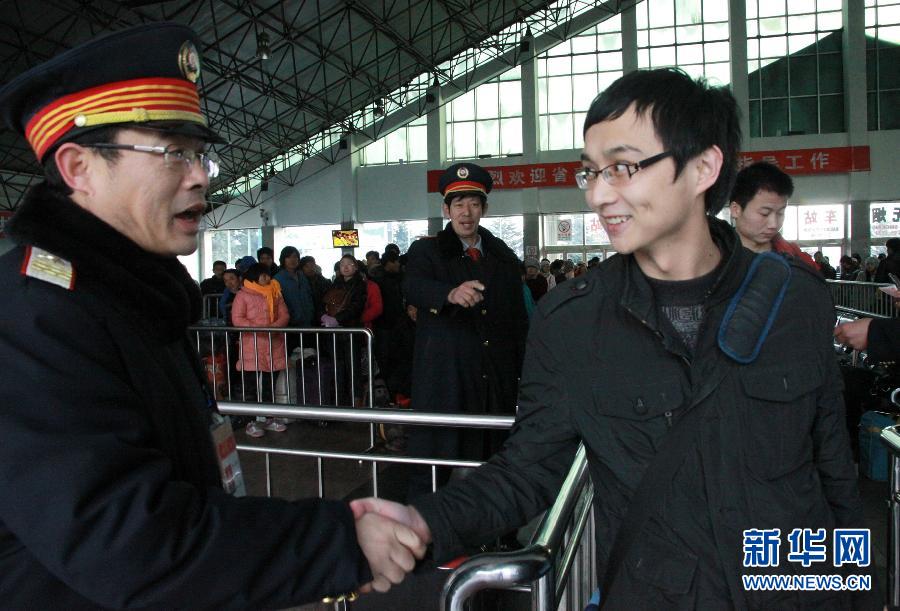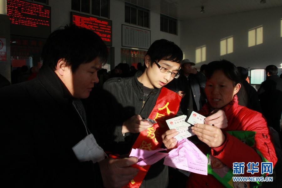 1月11日,在威海火车站,张平在返乡前帮助人们电话订票。春运期间,在山东威海火车站,有一名大学生免费为人们电话订票的事迹温暖了很多人,人们亲切地称他为“订票哥”。这名大学生名叫张平,山西朔州人,现在哈尔滨工业大学威海校区读大四。2011年12月31日晚,张平通过电话订票系统订到了回家的火车票,体会到电话订票的便捷。但同时他也发现,先进的订票方式由于宣传不到位,让一些上岁数的老人、文化程度不高的农民工或身有残疾的人们无所适从。为此,张平萌生了免费帮助人们订票的想法。新年伊始,张平的身影就出现在火车站,通过电话帮助人们订票。几天下来,张平成功订票400多张,许多路途遥远的旅客在他的热心帮助下,顺利踏上回家的旅途。 1月11日是张平回家的日期,在上车之前的时间里,他依然在威海火车站帮人订票,用自己的爱心,温暖他人回家的路…… 新华社发(于启波摄)