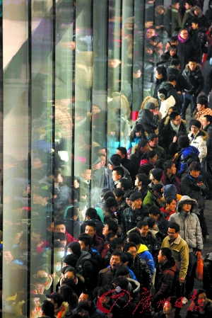在上海购买iPhone 4S手机的排队人群中,黄牛占了绝大多数。