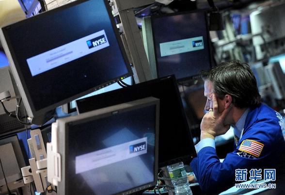 1月13日,交易员在纽约证券交易所内工作。当日,受到摩根大通银行业绩不佳以及标准普尔可能调降法国等欧元区国家主权信用评级的影响,纽约股市下跌报收,结束了此前连续4个交易日收高的走势。新华社记者申宏摄