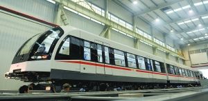 1月20日,一列中低速磁浮列车在中国南车株洲电力机车有限公司内下线。新华社发