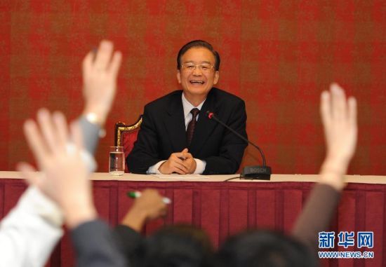 1月18日,中国国务院总理温家宝在多哈举行记者会,回答中外记者提问。新华社记者 谢环驰 摄