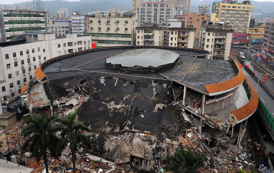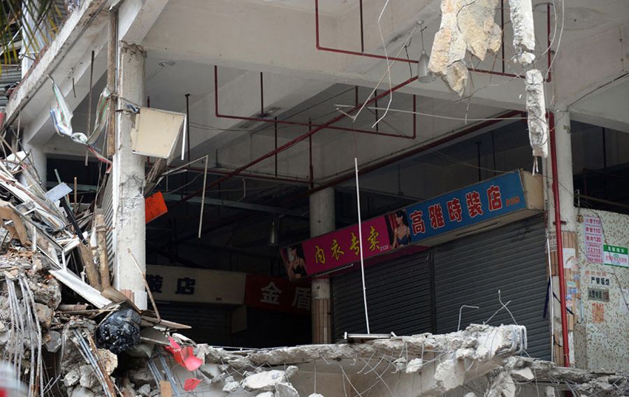 图为遭遇强拆的布吉综合市场25日仍被布吉警方严密封锁,坍塌了近一半的建筑面目全非。