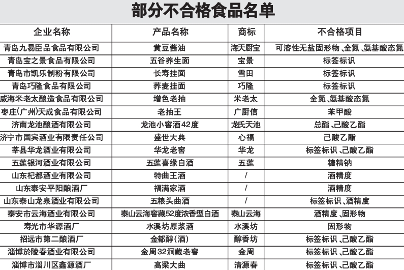 山东114批次食品不合格 青岛4批次食品上黑榜