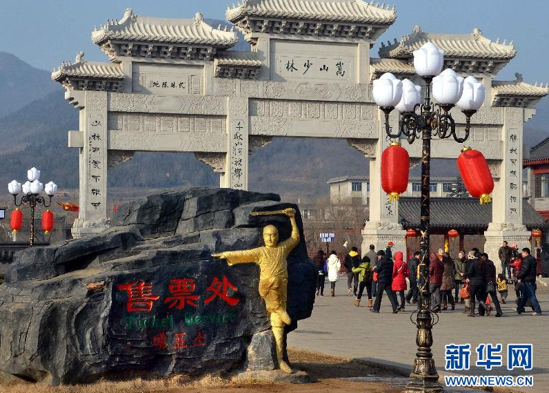 游客们进入嵩山少林景区(2012年1月31日摄)。新华社记者王颂摄