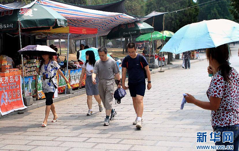 在嵩山少林景区大门通往少林寺的旅游通道上,沿途有许多违章搭建的个体商业摊点(2011年6月29日摄)。新华社记者王颂摄