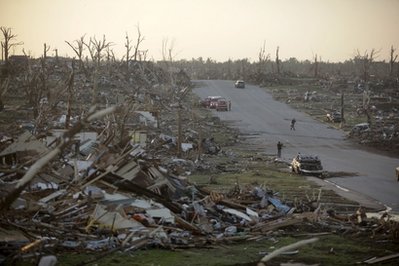 据悉,在龙卷风发生前,乔普林市的居民曾得到了20分钟的宝贵预警时间,否则死伤人员很可能要暴涨。很多人满身泥水在街上行走,艰难地寻找着自己的家园和亲属。天气预报显示,未来当地可能还要遭遇冰雹、暴雨甚至更多龙卷风的袭击。