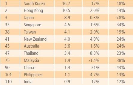 环球网记者王欢、王欣报道,据Record Japan新闻网2月1日消息,根据全球最大的CDN服务商美国Akamai公司1月31日公布的最新数据显示,2011年第四季度世界平均网速同比提升了39%,达2.7Mbps,平均连接速度最快的国家或地区是韩国,日本排在第三位。而中国大陆仅排在第90名。