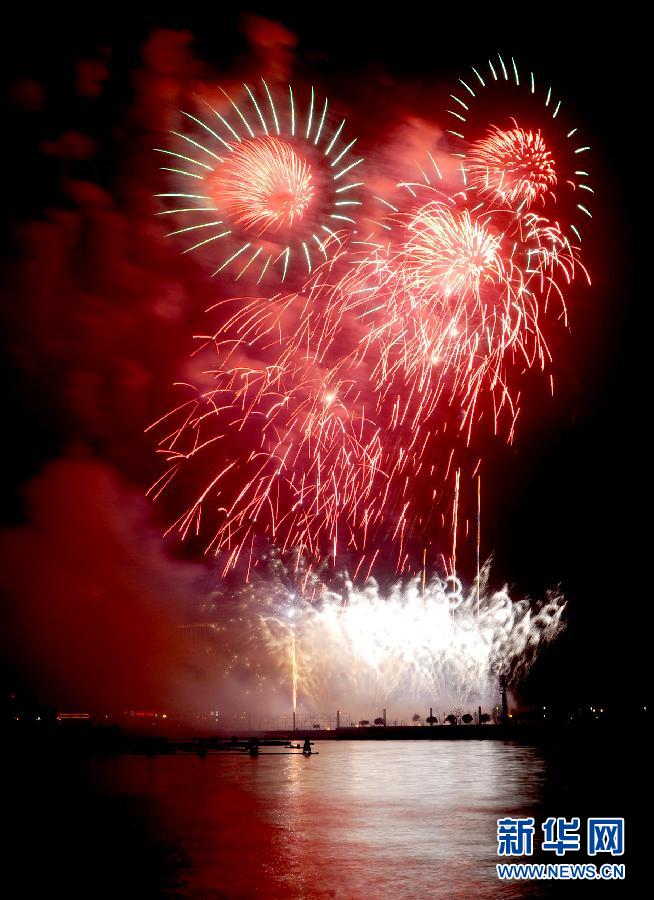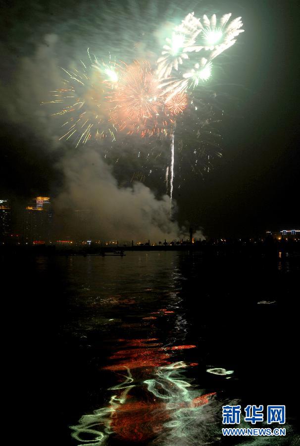 这是2月6日晚在兰州水车园拍摄的兰州市焰火晚会。