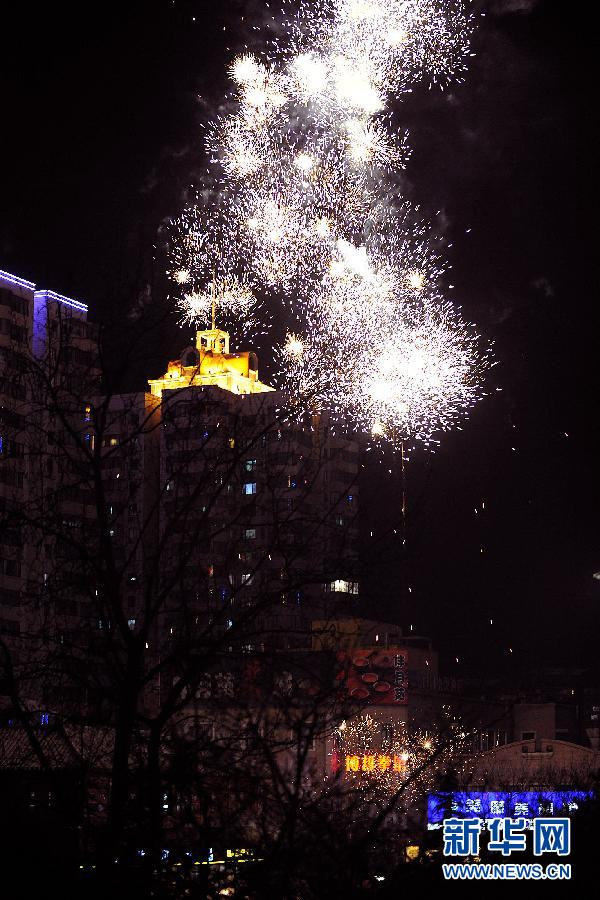 2月6日,北京元宵节夜晚鞭炮震响,烟花齐放