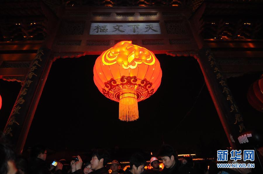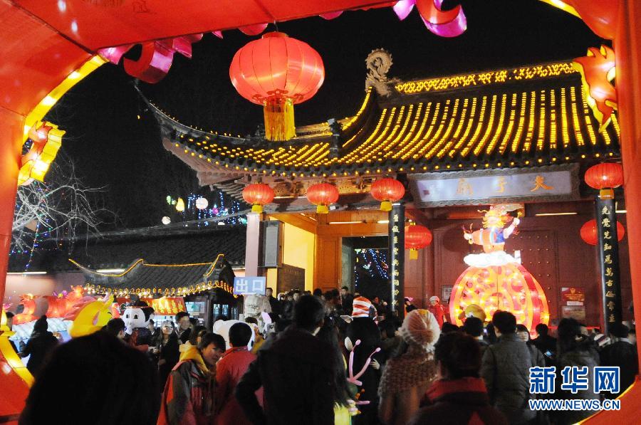 2月6日,游人在夫子庙前的“天下文枢”牌坊下观灯。当日是元宵佳节,正在举办秦淮灯会的南京夫子庙景区出现客流高峰,大约40万市民和游客前来观灯、游玩,喜迎元宵佳节。