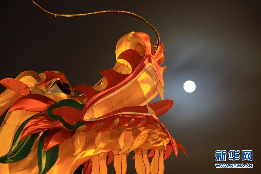 2月6日,广东汕头华侨公园门前“上演”彩龙戏“珠”。当日是农历正月十五元宵节,五彩缤纷的节庆彩灯与天上的圆月相映成趣,构成一幅幅美丽的画面。