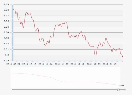 中国人民银行授权中国外汇交易中心公布,2012年2月10日银行间外汇市场人民币汇率中间价为:1美元对人民币6.2937元,1欧元对人民币8.3590元,100日元对人民币8.1026元,1港元对人民币0.81150元, 1英镑对人民币9.9494元,1澳大利亚元对人民币6.7711元,1加拿大元对人民币6.3215元,人民币1元对0.47937林吉特,人民币1元对4.7207俄罗斯卢布。