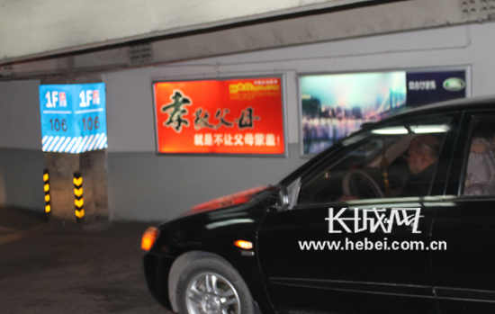 孝道广告牌挂到地下停车场。程行摄