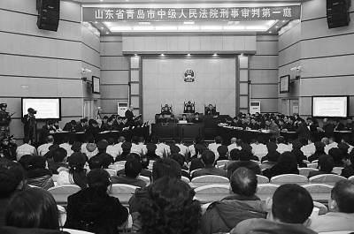 聂磊涉黑案开庭现场。青岛市中级人民法院供图