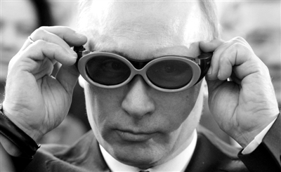 17日,西伯利亚港,普京试戴高科技眼镜。