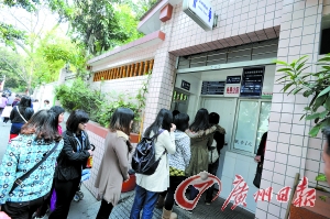 昨日上午,越秀公园正门一公共厕所的女厕所门口排起了队。记者杜江摄