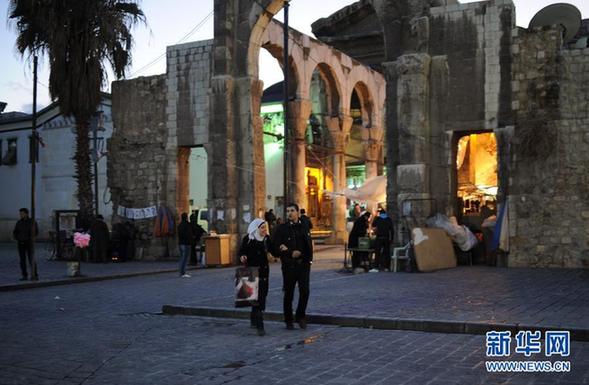 2月19日,一对情侣走在叙利亚首都大马士革街头。新华社记者覃海石摄