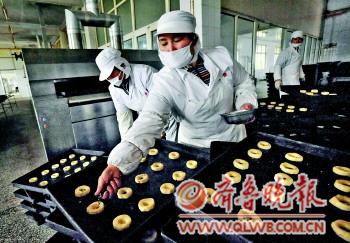 而在天桥区无影山北路的济南益康食品有限公司,一进门,就能闻到烘焙食品的香味。这里生产无蔗糖桃酥、无蔗糖蜜三刀、无蔗糖老婆饼、无蔗糖针丝麻叶儿等多种口味的糕点。记者穿上特制的工作服后,跟随工作人员来到食品生产车间,看着各式各样的糕点经过生产间、烘焙间、冷却间、装托间,最终进入包装间,打包装箱运往各大超市。