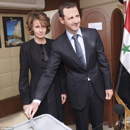 投票当天,叙利亚总统阿萨德携妻子到位于叙利亚国家广播电视台总部的投票站参加了新宪法草案公投。叙利亚电视台播出的电视画面显示,电视台工作人员争相欢迎阿萨德及其夫人,众人向阿萨德高喊:“唯有真主、叙利亚和巴沙尔。”阿萨德和妻子随后进行投票。