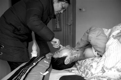 周妈妈在给女儿涂药膏。 本报记者 朱嘉磊 摄